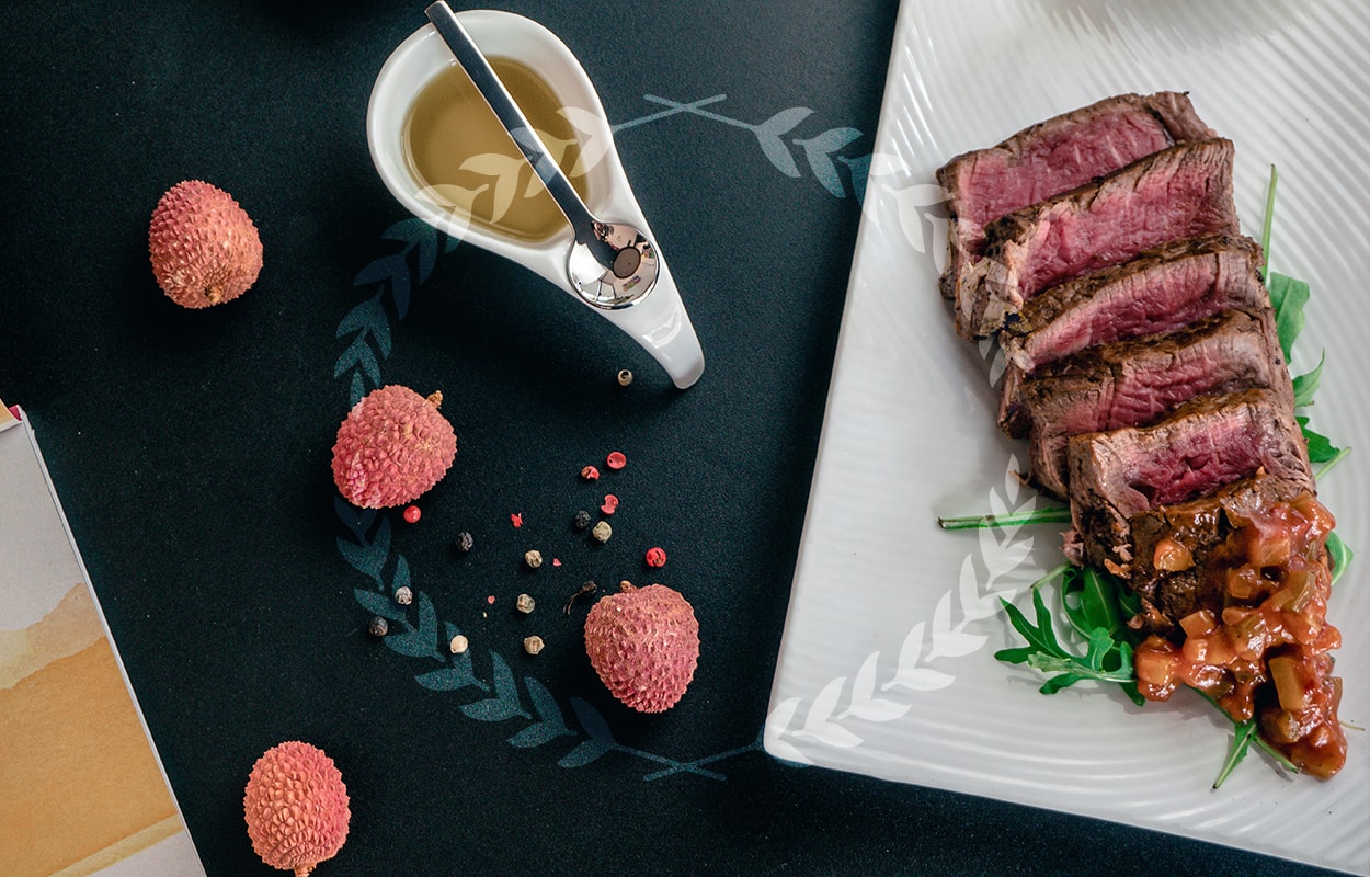 Beefsteak, tartufata sauce, chopped black truffles, grilled vegetable